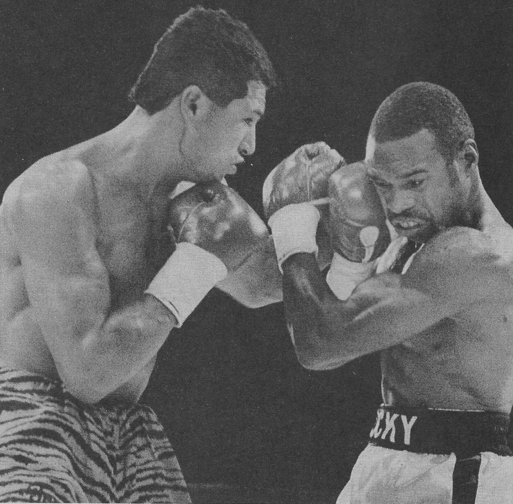 Tony Lopez wins super featherweight title from Rocky Lockridge. Boxing 89, March 1989.