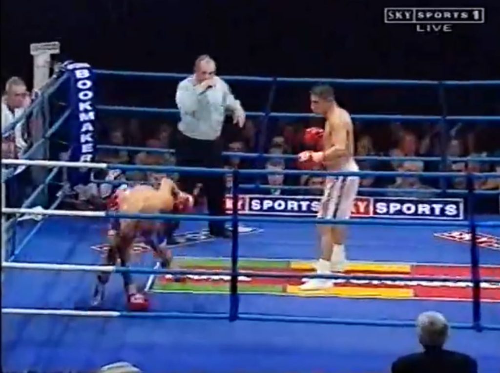 Jorrin knocking down Brodie in the 10th round to win super bantamweight title
